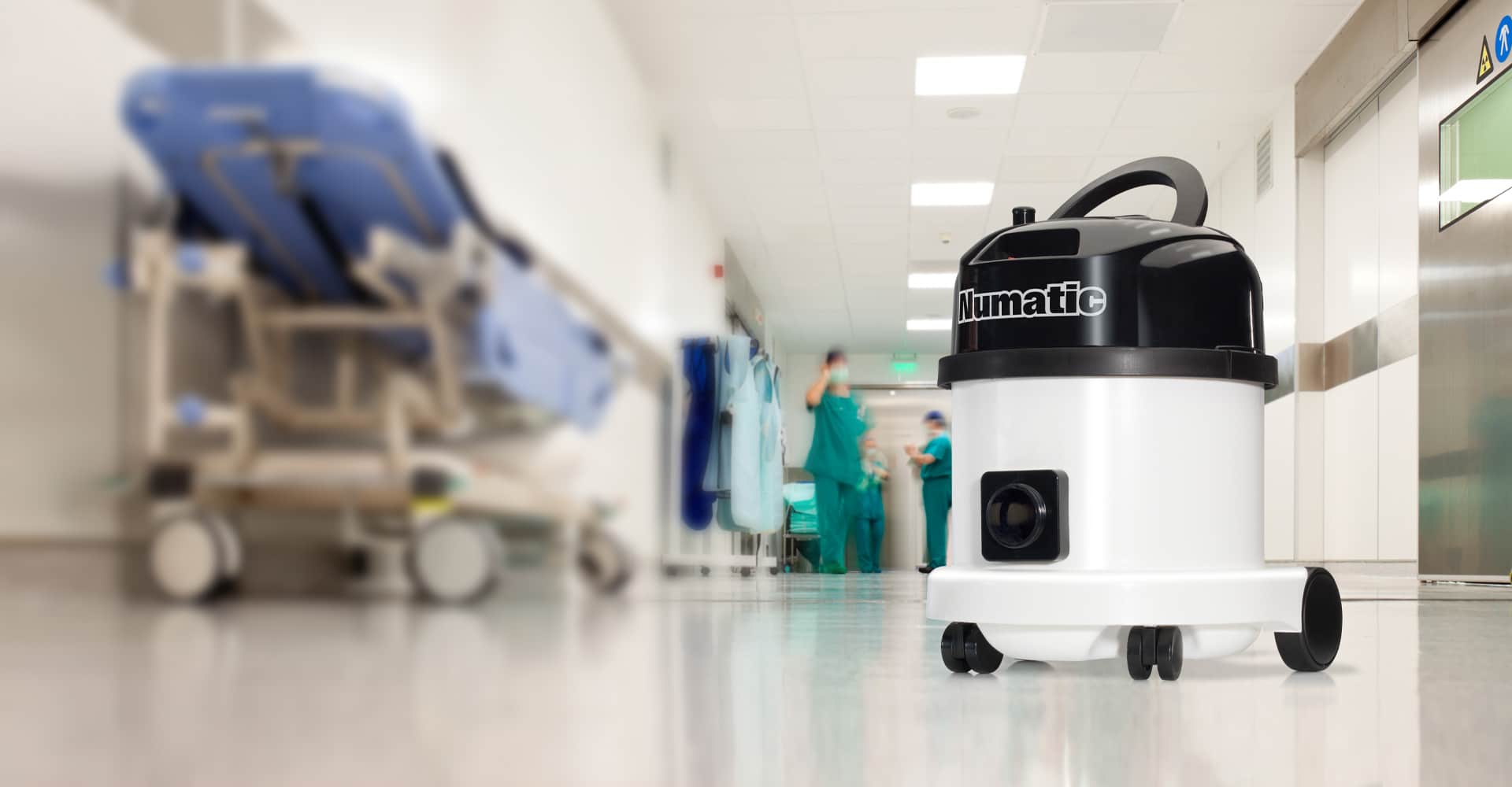Het Numatic-programma voor de gezondheidszorg voorziet in een complete reinigingsoplossing met stof- en waterzuigers, geavanceerde filtratiesystemen, schrob-zuigmachines en mopsystemen.